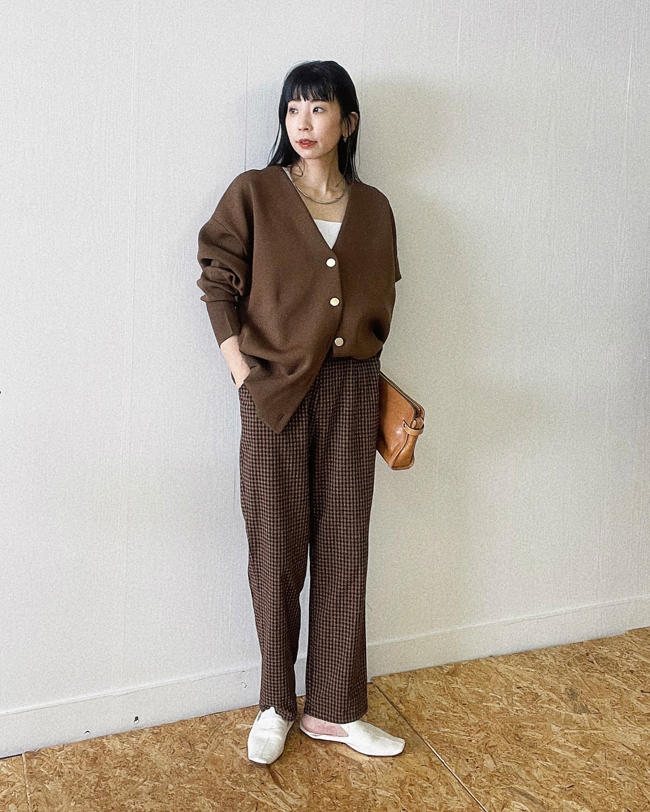 落ち着いたトーンのギンガムチェックストレートパンツ