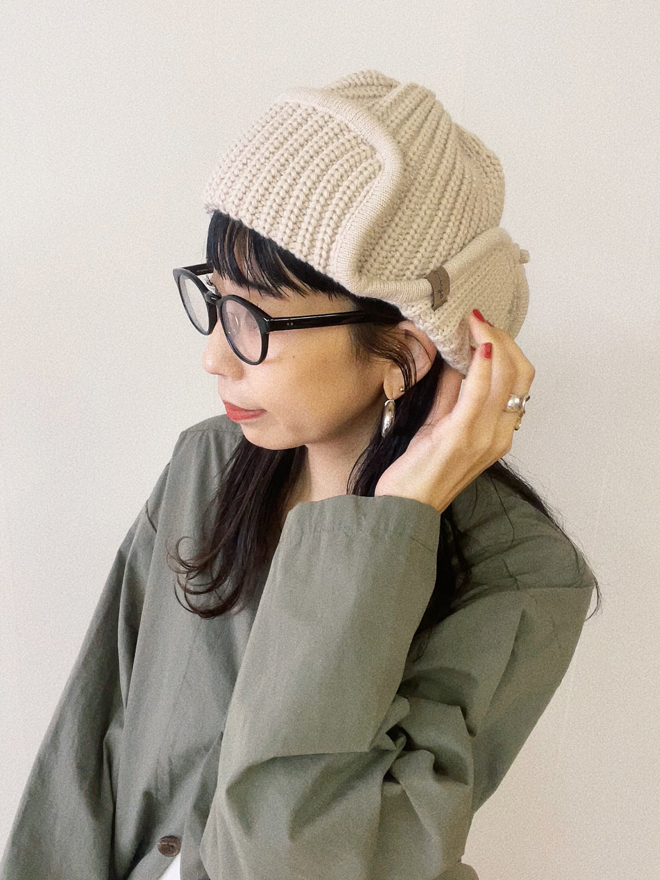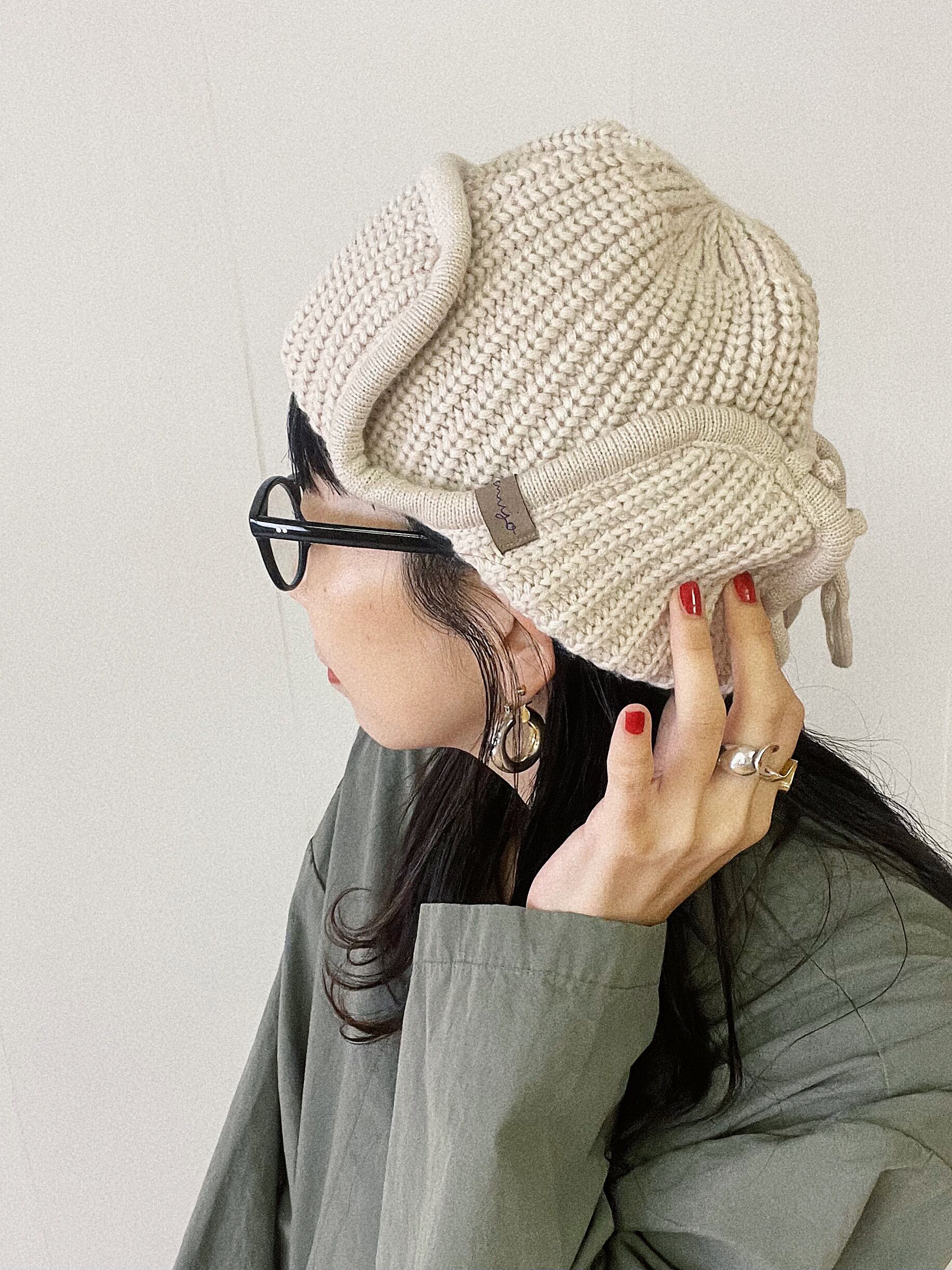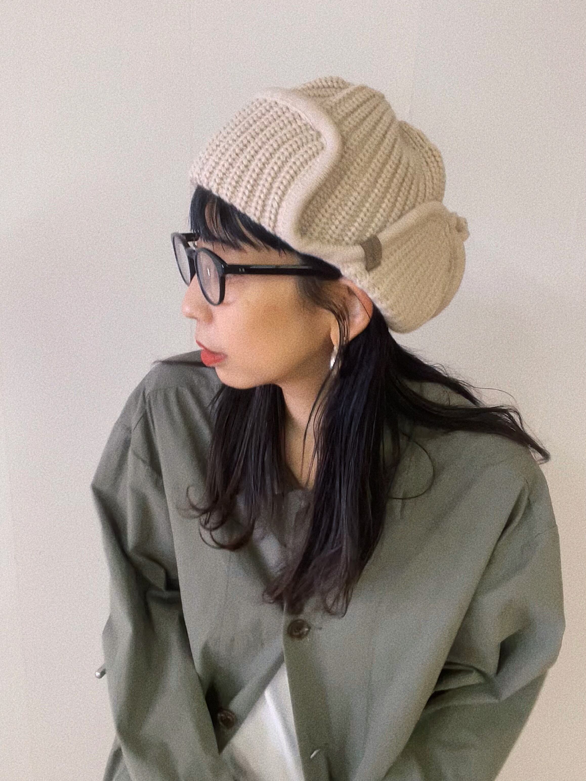 秋冬のマストアイテムざっくりリブ編みのフライトキャップ。