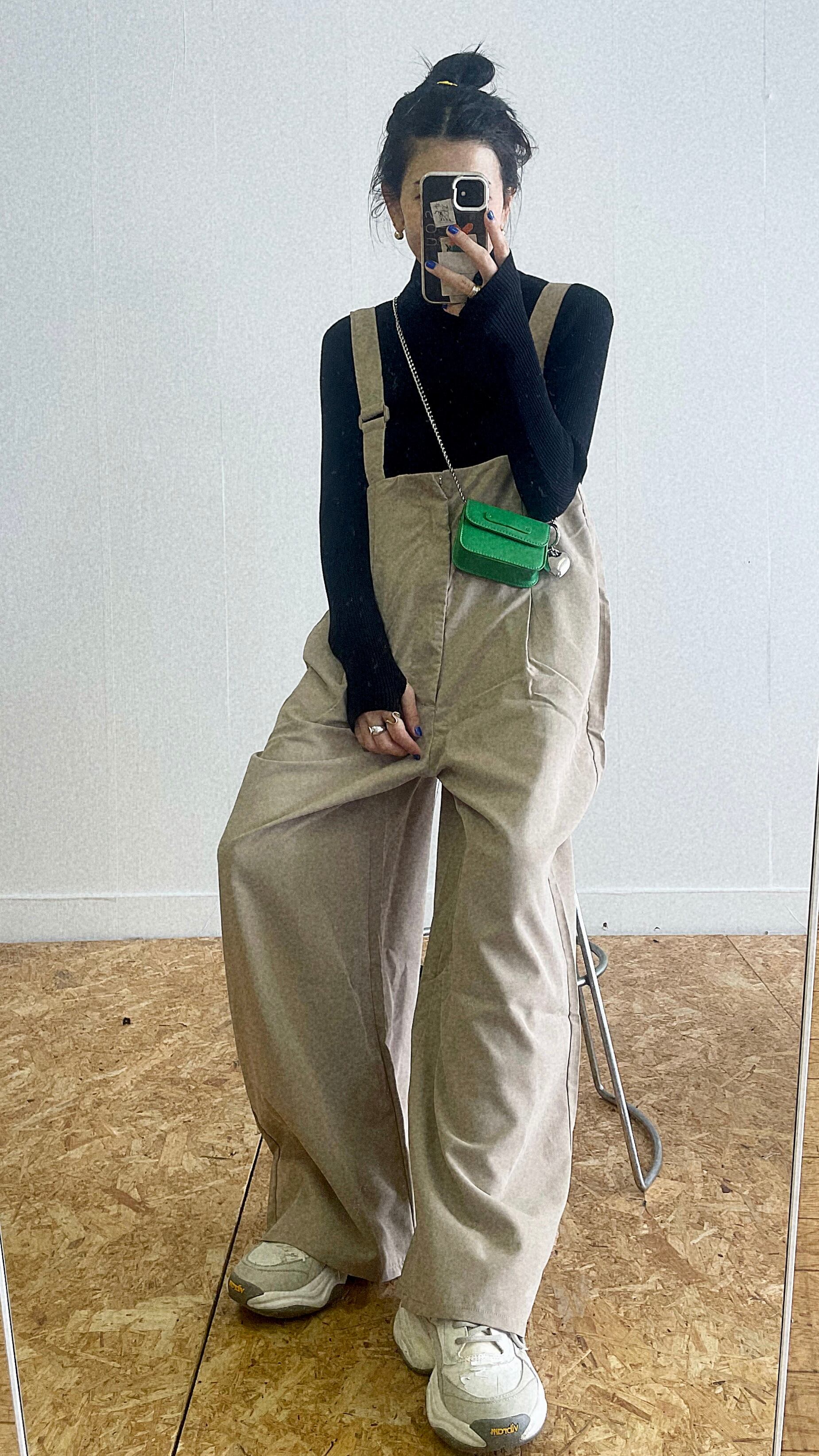 サスペンダーでお好みの丈感に調節ができるので、バスト上まで上げても◎下げて穿いても◎