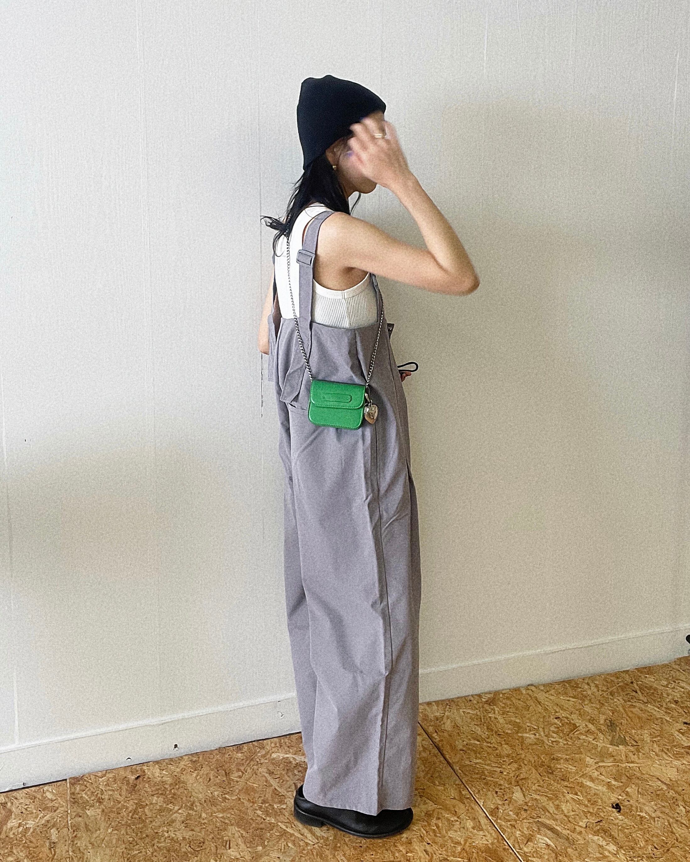 きれいめな印象のタックとワイドめなサスペンダーのディティールで、女性らしさを演出してくれるサスペンダートラウザー。