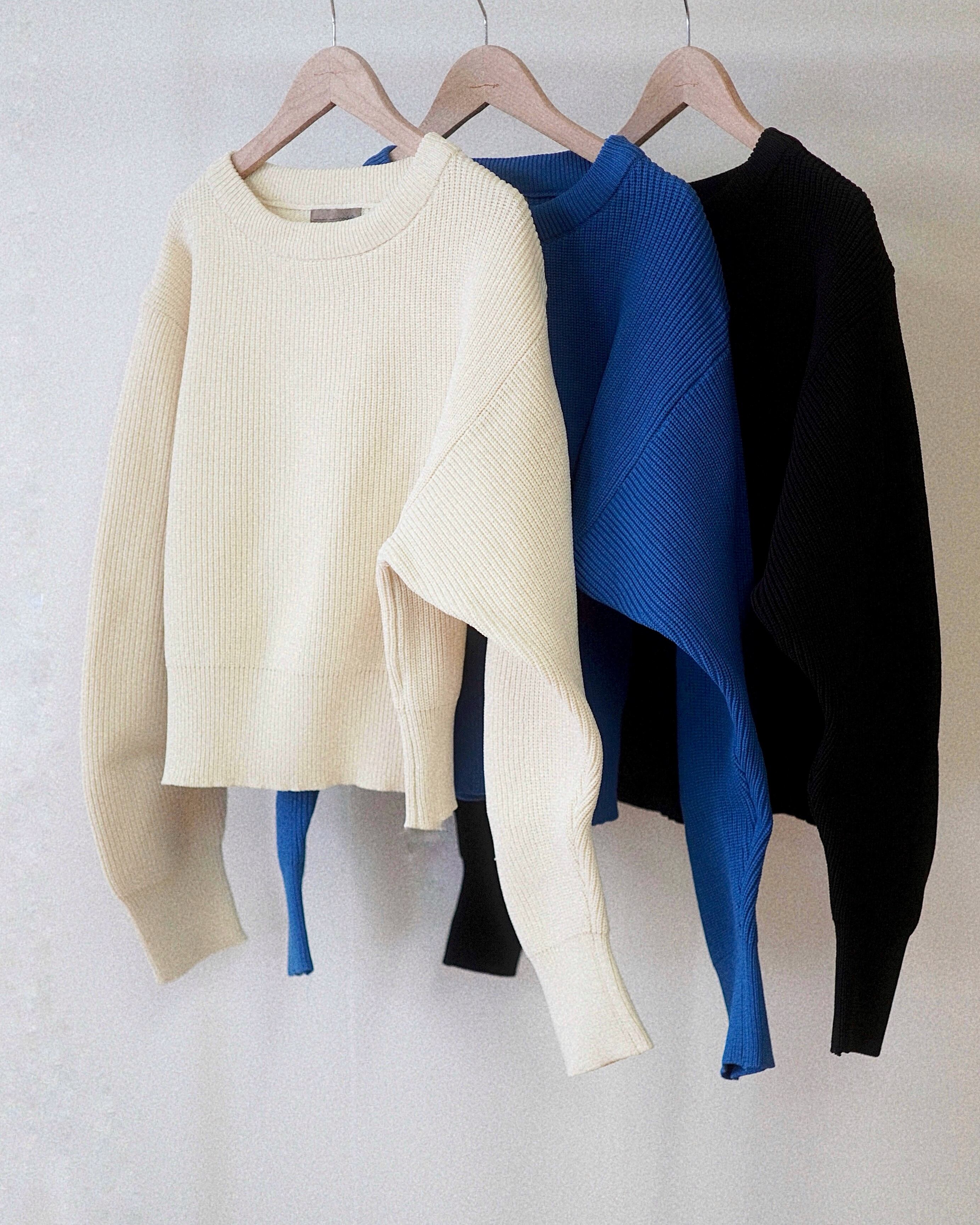 しっかりしたハリ感と立体的なシルエット、変形アームでシンプルながらも様になる一枚です。
