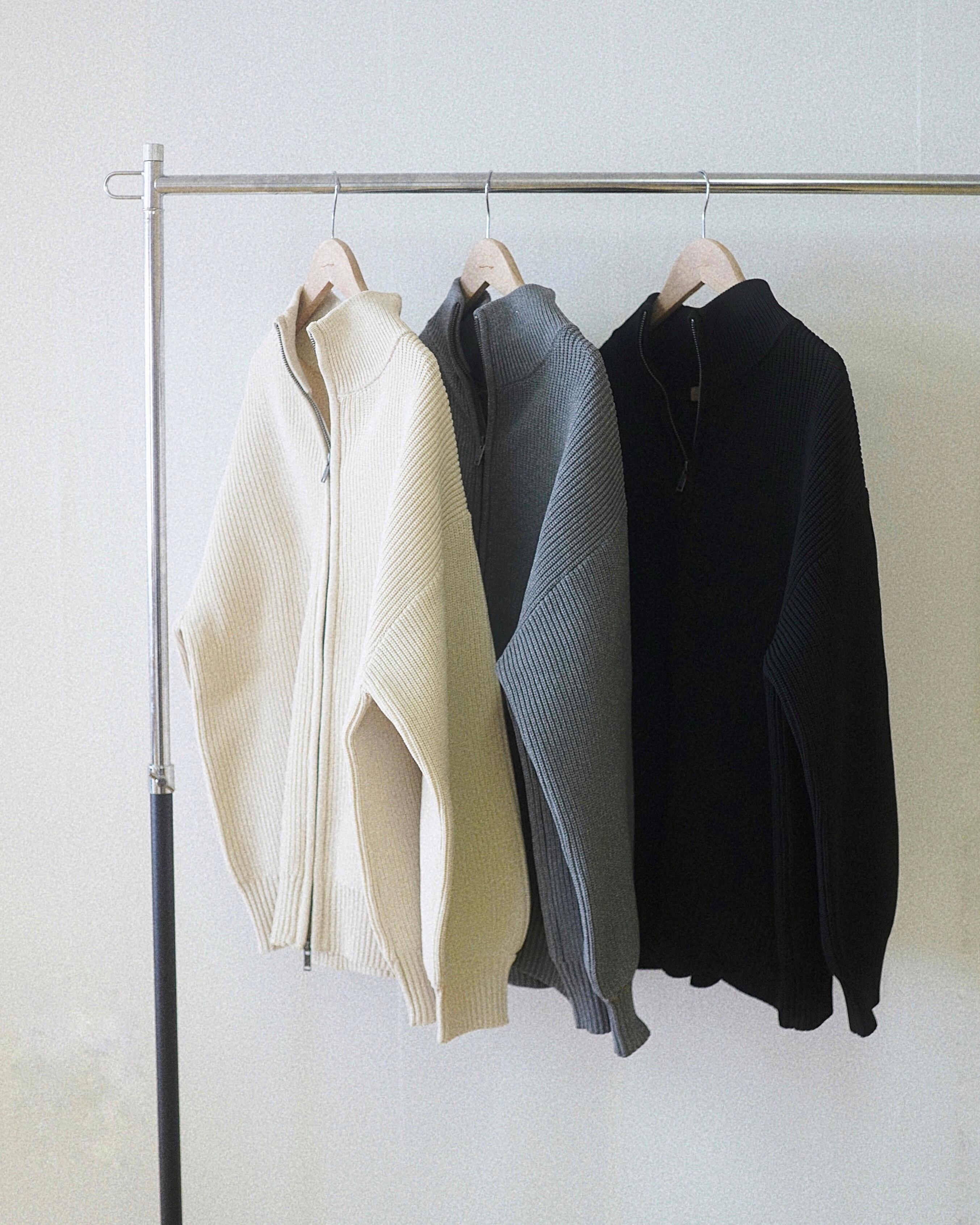 ジップアップデザインでカーディガン感覚で気軽に羽織れる一枚。