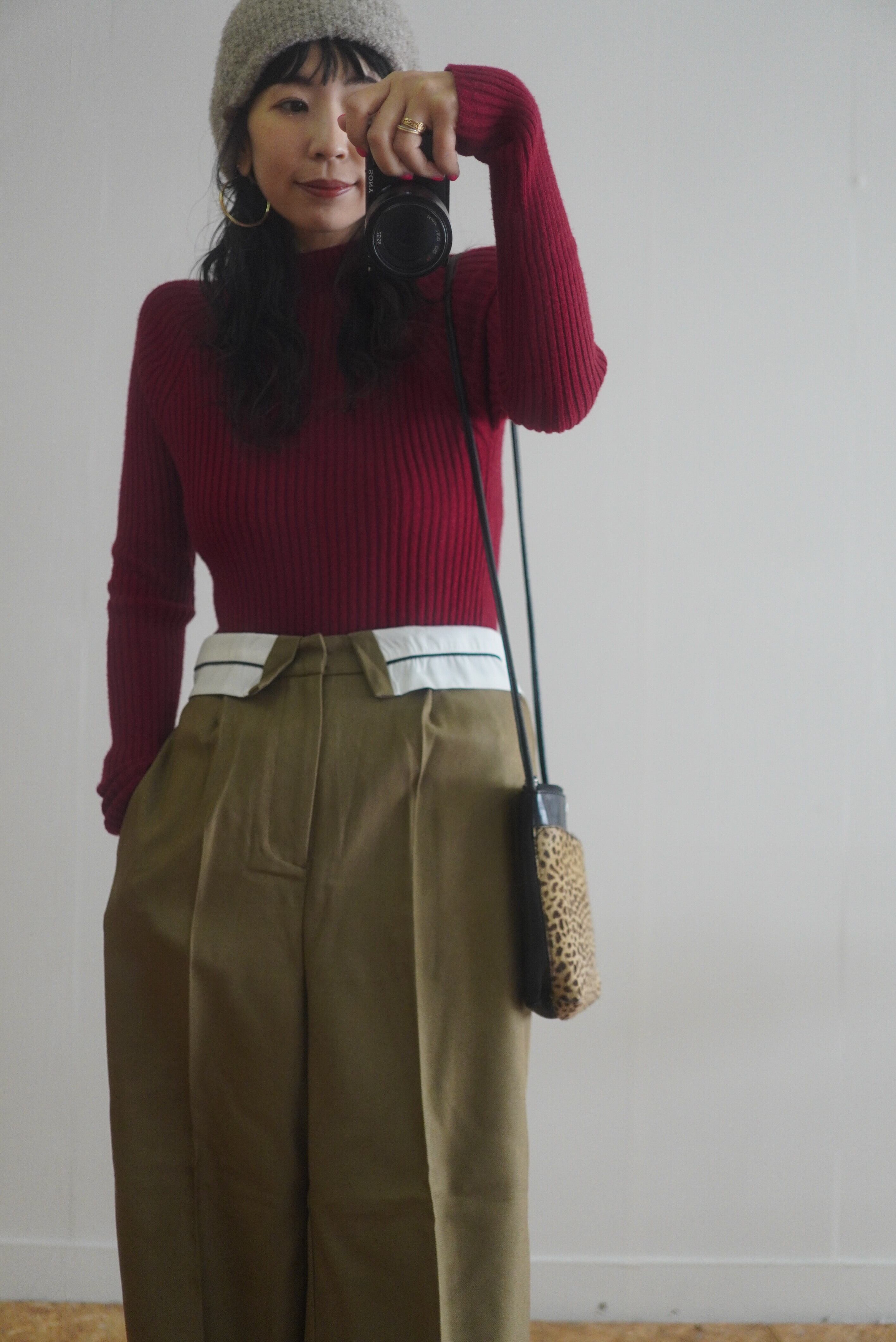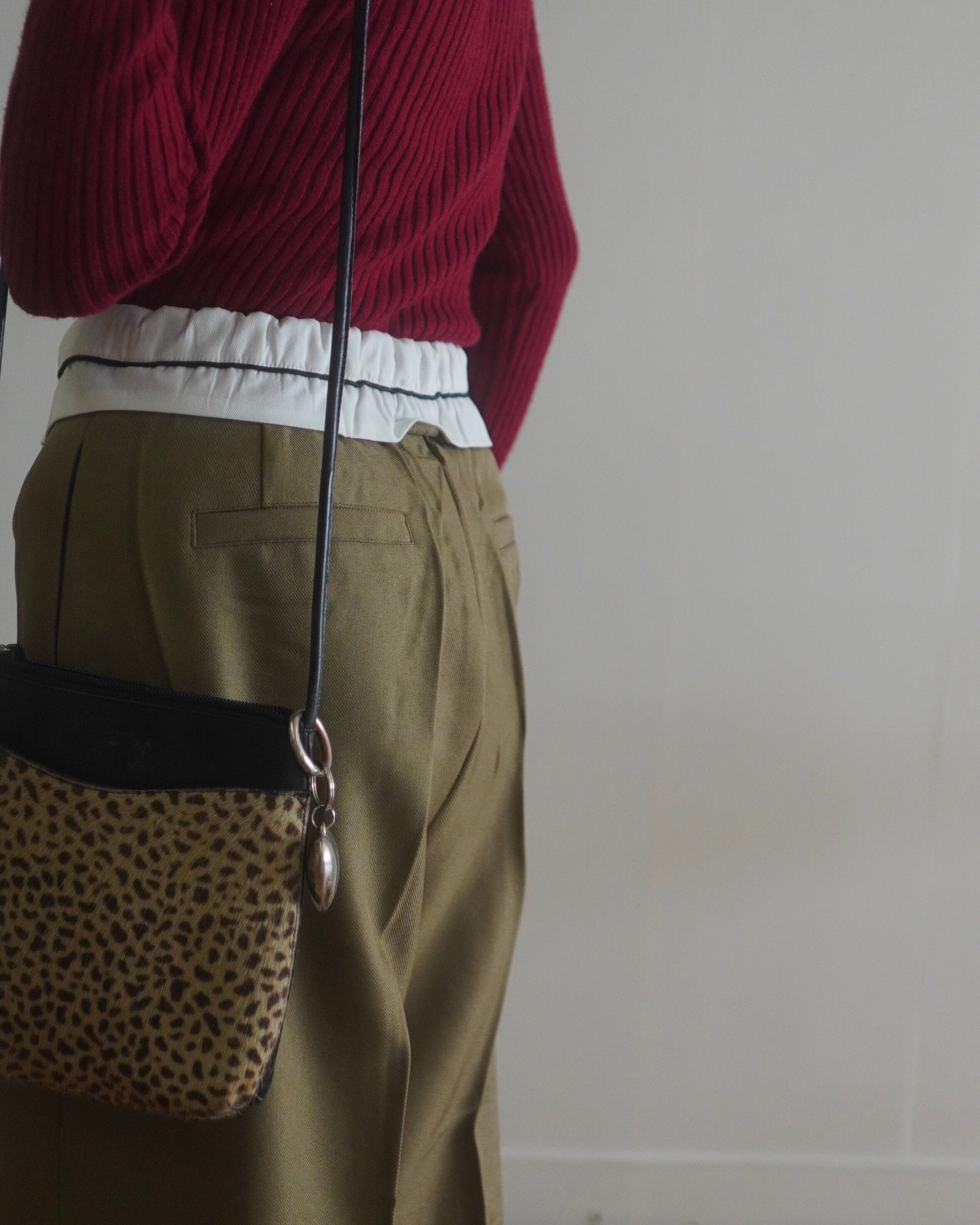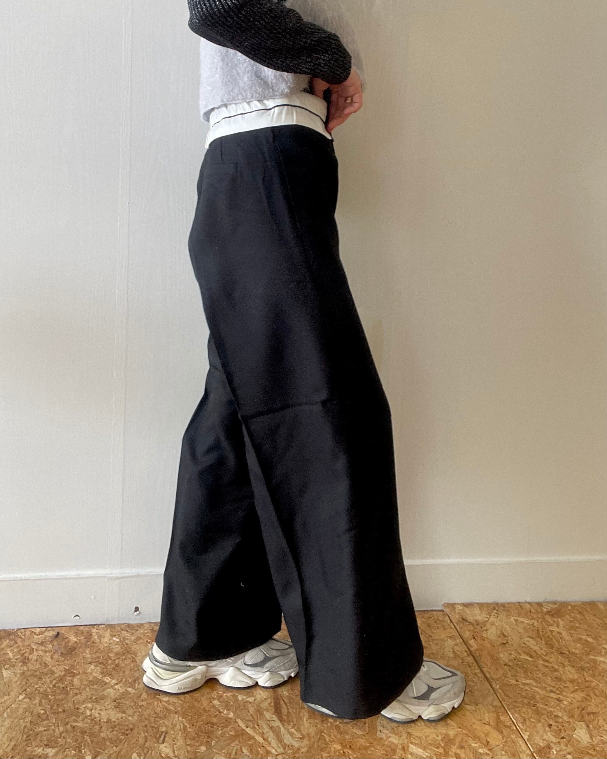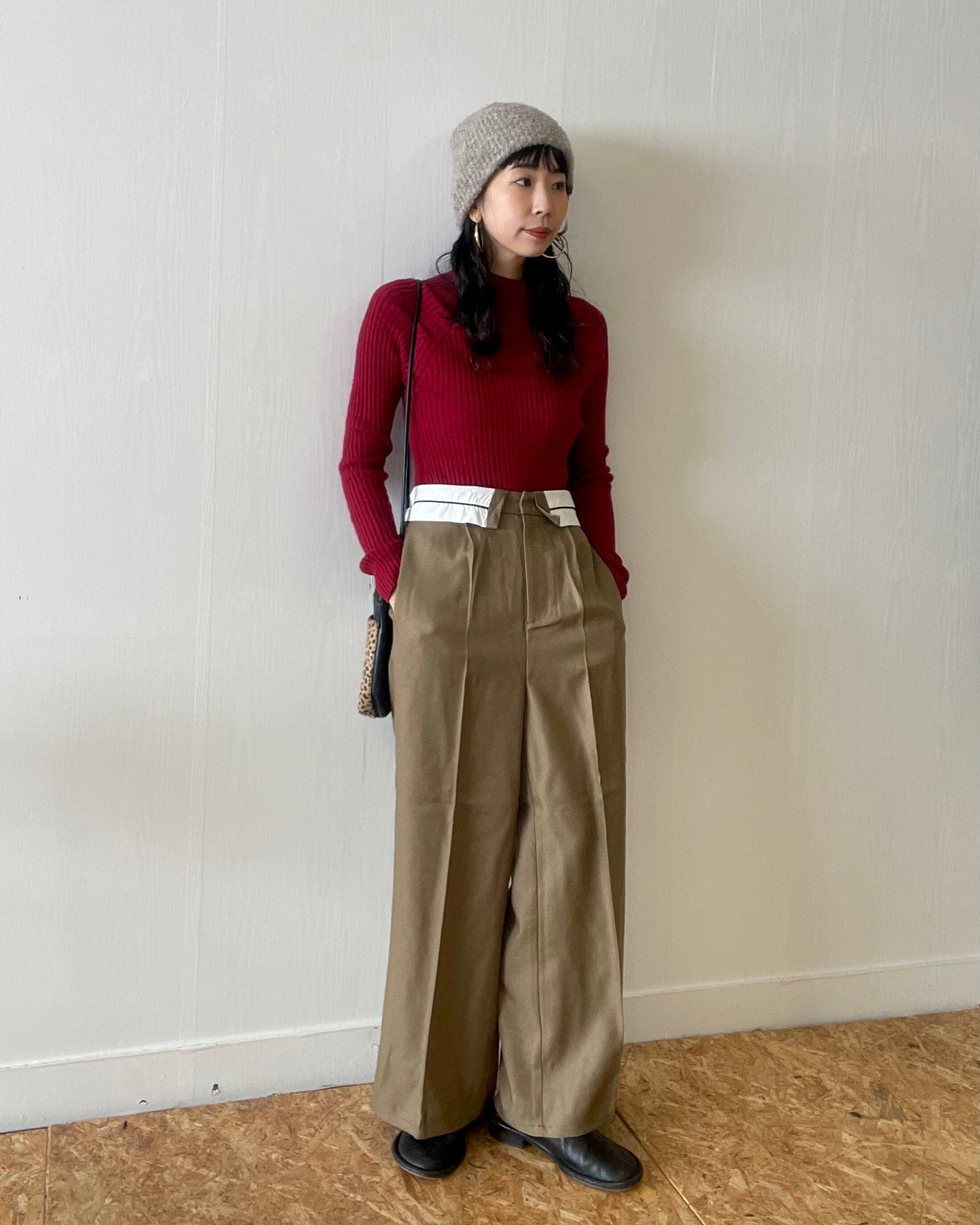 ウエストの折り返しデザインがポイントのハイウエストデザインパンツ