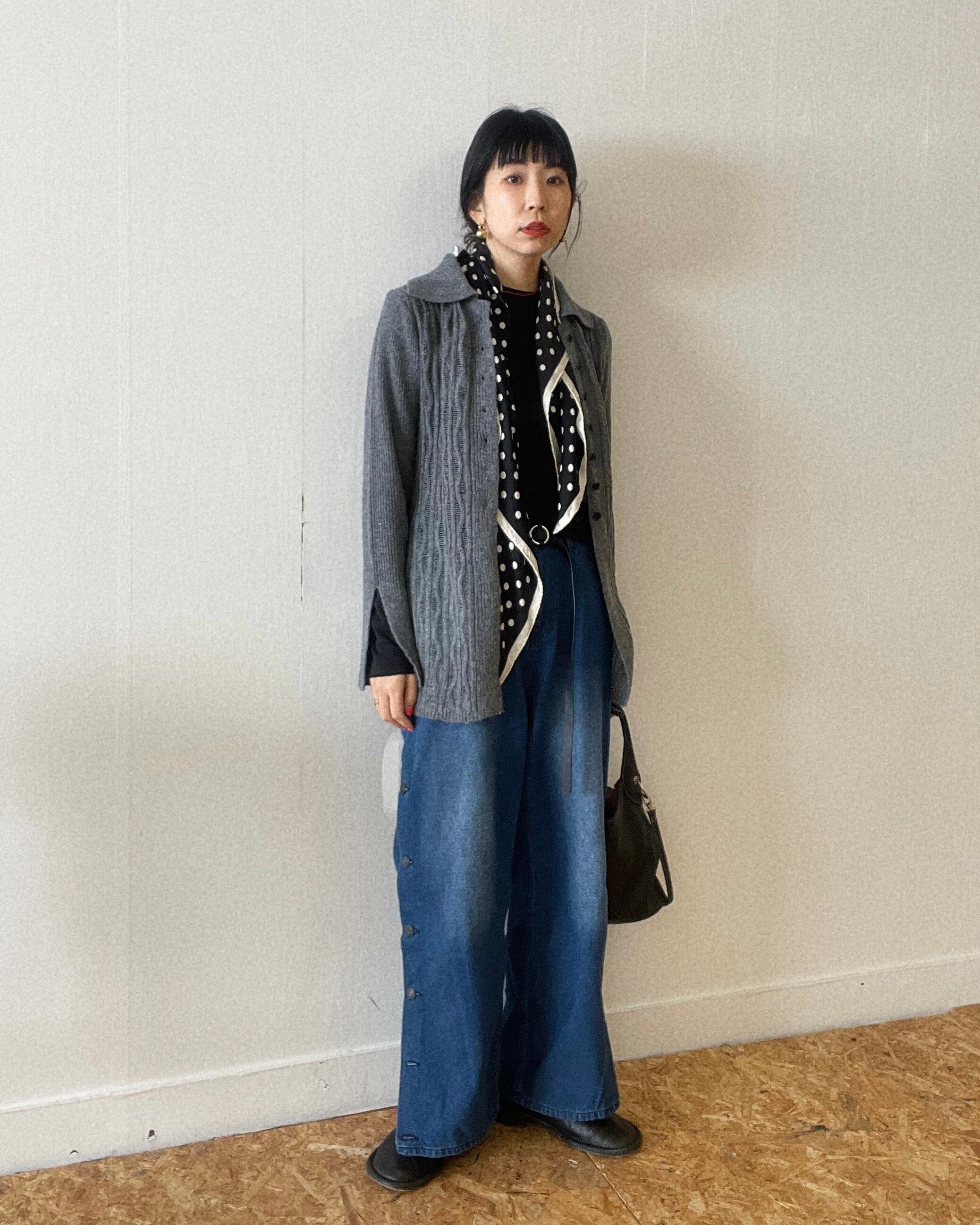 デニムと合わせたきれいめカジュアルなスタイルがおすすめ。